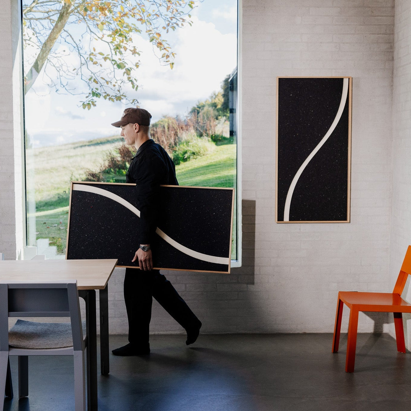 "Vores samarbejde med de anerkendte danske kunstnere Hvass&Hannibal forener kunst, genanvendte materialer og arv til Limited Edition akustikværker skabt af de historiske uniformer fra Den Kongelige Livgarde. Med deres rige historie og kulturelle betydning er uniformerne fra Den Kongelige Livgarde blevet genanvendt til betagende akustisk kunstværker, der ubesværet blander æstetik med funktionalitet."