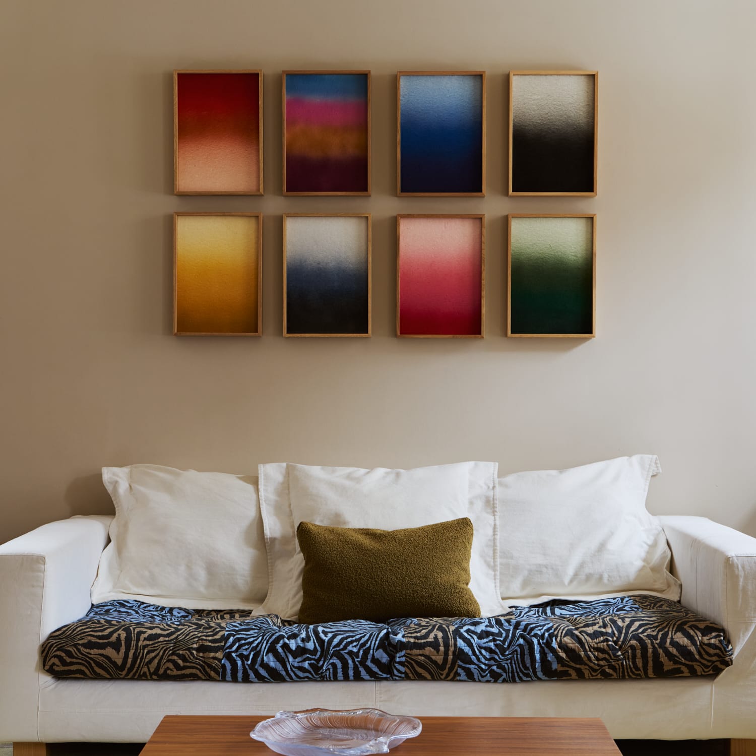 The Hazy Collection is characterized by soft transitions, where the colors hover between the concrete and the abstract – a reflection of natural light and its ever-changing nature. The artworks create a harmonious atmosphere, serving both as a decorative element and a functional solution in the interior.