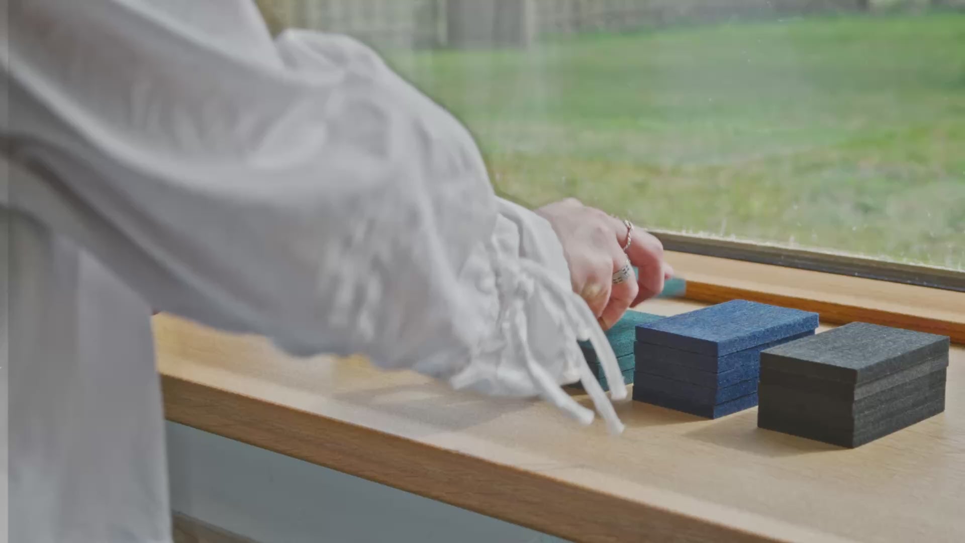 Our color samples pack are for anyone who is curious about feeling and seeing the color of our current Arturel x Kvadrat artworks. The pack contains our reused textile material in Natural and Slate Grey.