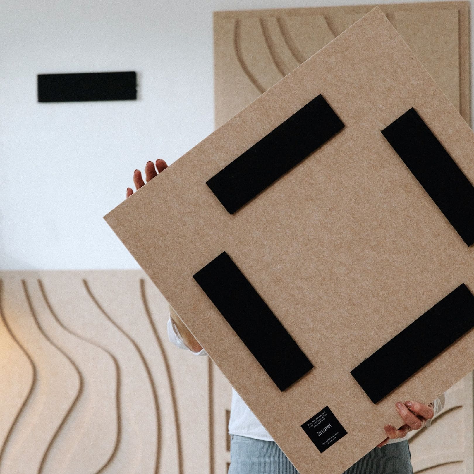 Our installation system simplifies and accelerates the setup of our acoustic artworks. The artworks come with a wall mount, ensuring easy handling and positioning. The system provides flexibility and stability and makes easy to move. Enjoy hassle-free installation and a professional result.