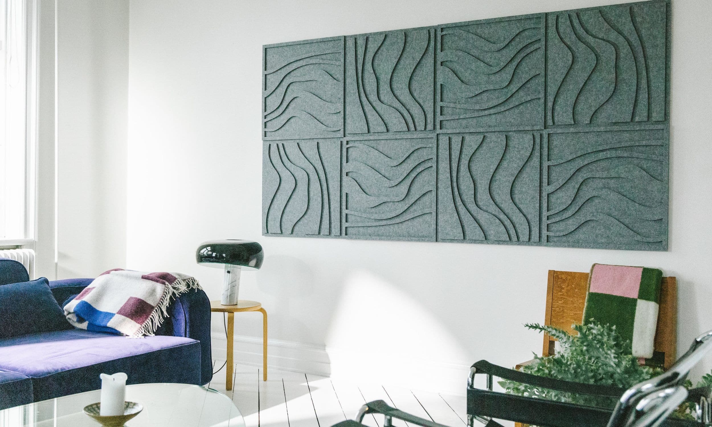 Acoustic art made from recycled materials. Designed by Nital Patel.